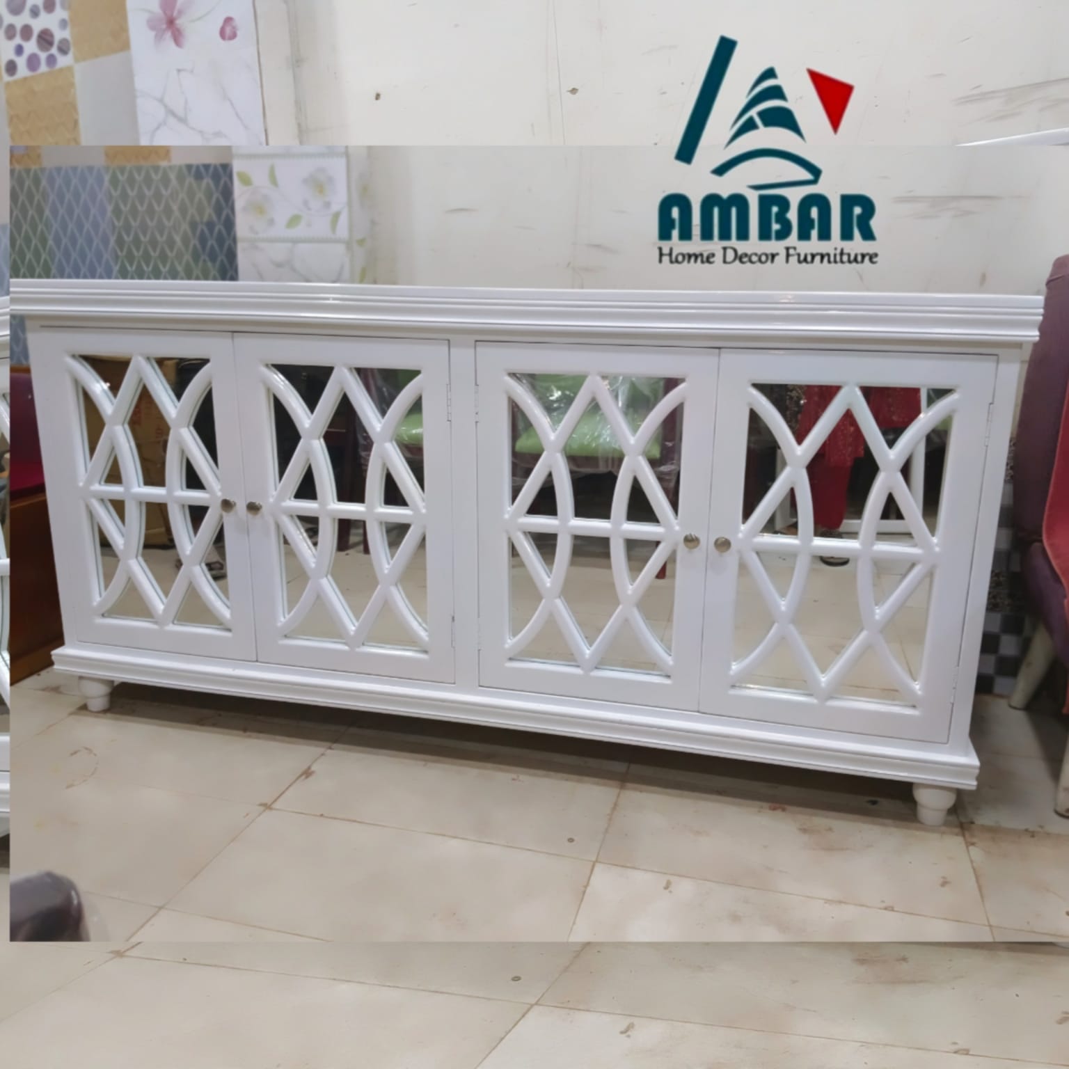 চারটি গ্লাসযুক্ত দরজা শুধু ফার্নিচারকে হালকা করে তোলে না, ভেতরে সাজানো বই, কালেক্টেবল বা ডেকোর আইটেমগুলোকে ভাসিয়ে তোলে—এক ধরনের অতি পরিপাটি ডিসপ্লে ইউনিটের মতো।